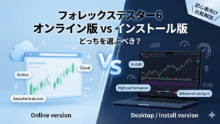 フォレックステスター(FTO・FT6)のオンライン版とインストール版を比較。価格・機能・オフライン利用・EAバックテストの違いを解説。初心者〜中級者にはFTOがおすすめ。無料版で試せます。